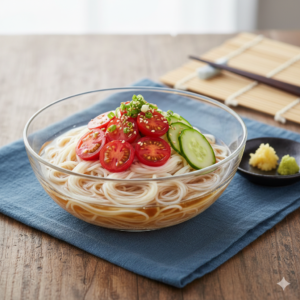 例えば、そうめんなら、納豆や卵、薬味を添えると良いです。