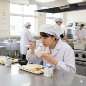 いずれの場合も、給食提供前に『検食』を行わなくてはなりません。