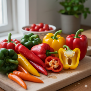 ピーマンもパプリカも甘味と香りがあり、加熱するとさらに鮮やかになります。